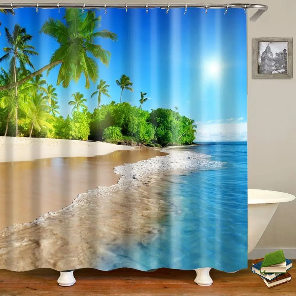 Get Cortinas de ducha de tela tema de la playa HD